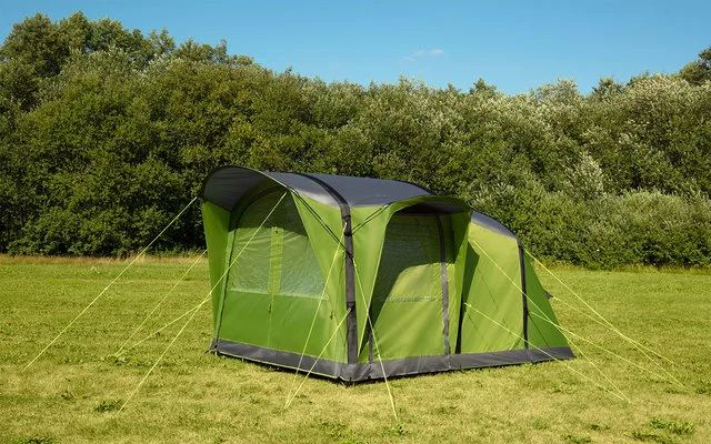 Dieses aufblasbare Zelt lässt sich schnellund einfach aufbauen und bietet durch seine zwei Eingänge, den Vorraum mit Stehhöhe und praktischem Organizer am Innenzelt überraschend viel Platz und Stauraum. Das Vordach kann mit einem Fiberglasstab aufgebaut werden, während das integrierte Luftgestänge innerhalb von wenigen Minuten aufgeblasen ist. Das Zelt bietet Platz für 3 Personen, womit es optimal geeignet ist für kleine Familien, Paare oder einen Kurztrip mit Freunden. Die komfortable Stehhöhe beträgt 210 cm.