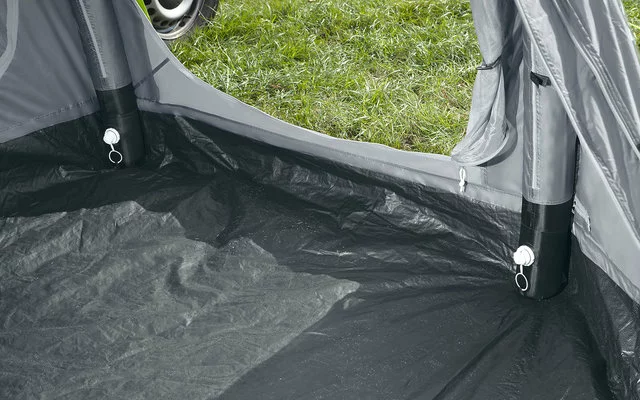 In der Lieferung enthalten sind die Zelthaut, der Zeltboden, 3 Luftschläuche, 2 Aufstellstäbe, einen Schleusenstab, eine Luftpumpe, Abspannmaterial und ein Packsack. Der Auf- und Abbau des Vorzelts ist schnell und einfach, da das Gestänge aufblasbar und der Boden eingenäht ist.