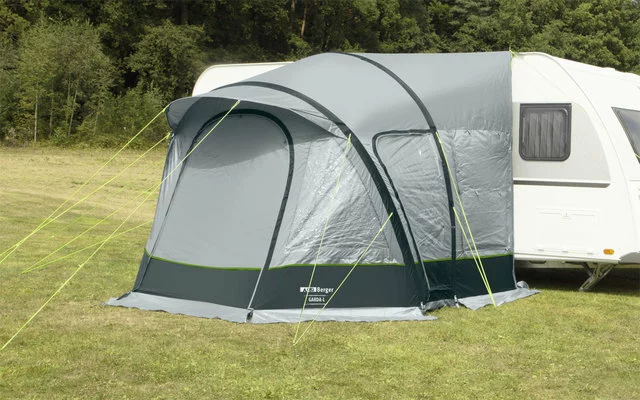 Das Wohnwagen-Teilvorzelt Garda Air sorgt für schnelle Entspannung und maximale Flexibilität am Urlaubsort! Dank aufblasbarem Gestänge und Einzug in die Kederschiene lässt es sich unkompliziert und schnell aufbauen. Das Garda Air bietet einen lichtdurchfluteten und gemütlichen Wohnraum, in welchem es sich auch bei schlechtem Wetter gut verweilen lässt. Durch die großen Panoramafenster, welche auch von innen blickdicht verschlossen werden können, haben Sie die Umgebung bestens im Blick. Das Vordach im Haupteingang bietet Ihnen zusätzlichen Schutz vor Regen. Für eine gute Belüftung finden Sie Dauerbelüftungen an der Vorderwand, sowie Moskitogaze an der Vordertür und an den seitlichen Fenstern. Das Teilvorzelt verfügt des Weiteren über einen zusätzlichen Seiteneingang auf der rechten Seite. Die Höhe im Zelt beträgt 243 cm.