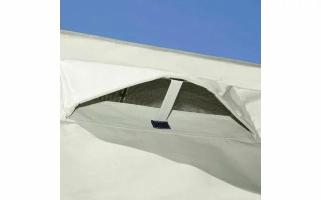 Strapazierfähiges Material für den dauerhaften Einsatz. Verschließbare Hochentlüftung an der Vorderwand. Eingang als Sonnendach ausstellbar. Moskitogaze-Belüftung an der Rückwand (von außen verschließbar). Innen angebrachte Abdeckklappen für alle drei Fenster. Inkl. zwei praktischen Organizer. Lieferumfang: Zelt, Stahlgestänge, Abspannmaterial.