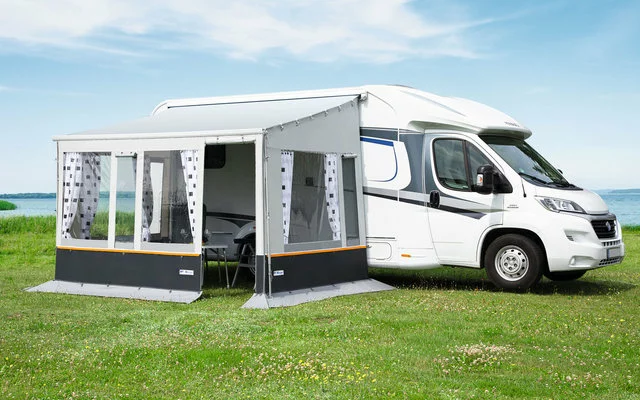 - Je ein großes Klarfolien- und ein verschließbares Moskitogazefenster (RV)
