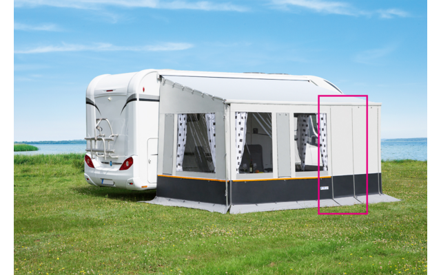 Das Verbreiterungselement für Fiamma und Thule Markisen für die perfekte Anpassung Ihrer Vorderwand an die Markisenlänge. Es wird über einen Reißverschluss mit der Vorderwand verbunden und kann links oder rechts am Markisenzelt befestigt werden.