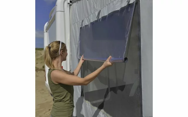 Die Dometic CampRoom Markisenzelt-Frontwand ist Teil eines einfach zu montierenden, wasser- und windabweisenden Markisenzeltes, das an jeder Dometic Markise mit Stützbeinen befestigt werden kann. Die Fenster sind standardmäßig mit aufrollbaren Moskitonetzen, PVC-Fenstern und Vorhängen ausgestattet. Fügen Sie noch die mitgelieferten Bodenschürzen hinzu, entsteht ein zusätzlicher Schlafplatz. Lässt sich mühelos von nur einer Person aufbauen!