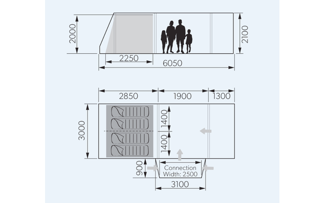 - Hinterer Stauraum: Der großzügige hintere Stauraum, der durch die inneren Zeltschlafbereiche zugänglich ist, erleichtert die Gepäckaufbewahrung