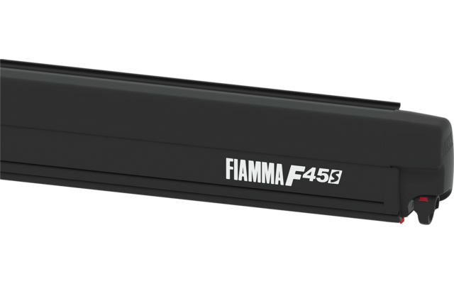 Die Fiamma F45s in Deep Black mit Tuch Royal Grey ist eine elegante und leichte Fiamma Markise mit vielen Vorteilspunkten: