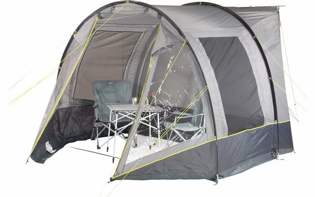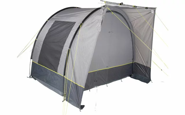 Das Tunnelzelt ist schnell aufgebaut und ideal für Kurztrips. Die verstellbare Dachgestänge stabilisieren das Zelt. Moskitonetz belüften den Wohnbereich und halten Insekten aus dem Zelt. Die innenliegende Reißverschluss-Fensterklappen können einfach und variabel je nach Wetterbedingungen bedient werden. Die Dauerventilationen belüften das Zelt auch an regnerischen Tagen und sollten immer geöffnet sein. Rundum Faulstreifen halten Nässe und Schmutz ab. Extra robuste Reißverschlüsse mit RV-Abdecklappen und Regenrinnen für doppelten Schutz gegen Feuchtigkeit. Neon gelbe Abspannleinen sind in der Dämmerung gut sichtbar.