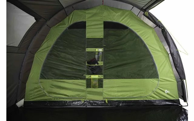 Die Nähte sind mittels Nahtband wasserdicht versiegelt und gewähren eine bessere Naht-Reißfestigkeit. Abgedunkeltes Innenzelt mit 2 Eingängen und herausnehmbarer Trennwand. Der Moskitonetz-Eingang hält lästige Plagegeister fern und kann bequem von innen je nach Klima variabel bedient werden. Die Abdecklappen verstaut man einfach in einer Tasche.