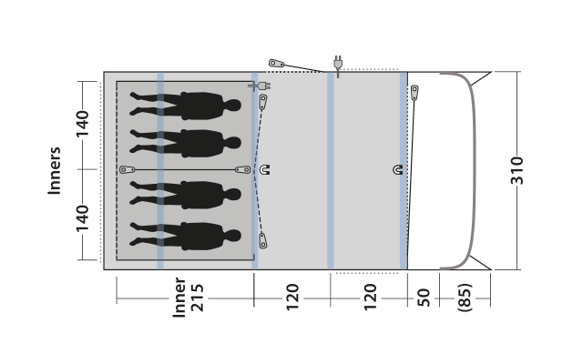 - Überzelt mit komplett versiegelten Nähten für maximalen Schutz vor Wettereinflüssen