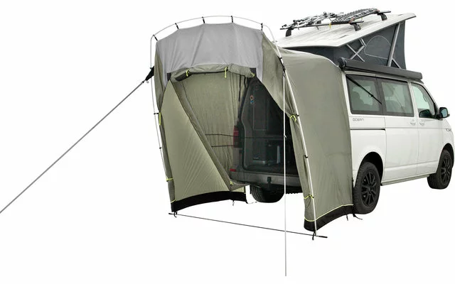 Das Outwell Sandcrest L ist ein kompaktes Heckzelt für Campingbusse und Transporter mit einer Höhe von 175-205cm. Es ist perfekt für Camping und Kurztrips zum Kochen, als Tagesunterkunft oder Umkleidekabine. Sie werden den Wert des zusätzlichen Raumes zu schätzen wissen, den das geniale Sandcrest L für ein komfortableres Van-Leben bietet. Dank des intelligenten Designs können Sie die Heckklappe sicher schließen und verriegeln, wenn Sie zu einer Wanderung oder zu einer Radtour aufbrechen, oder sie lassen die Heckklappe nachts geöffnet, während Sie Ihr Van mit dem internen Insektenschutzgitter für eine gute Belüftung sichern. Mit nur einem Aluminium-Bogen ist es sehr schnell aufgebaut und es hat ein sehr geringes Packmaß. Durch das clevere Befestigungssystem werden Schiebentüren nicht durch Abspannseile blockiert. Im großen Zelteingang ist ein Insektenschutzfenster, welches mit einem wasserdichten Vorhang verschlossen werden kann. Als Bonus können Sie die Tür als Sonnendach (Gestänge nicht im Lieferumfang enthalten) ausstellen.
