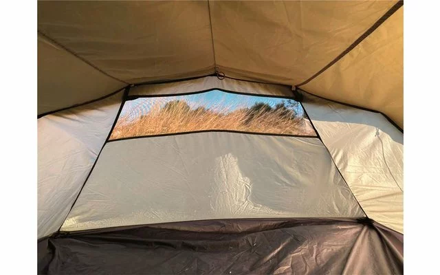 - Außenzelt: HydroTex HD RS, 75D Polyester 190T, Ripstop, feuerhemmend, 100% Polyester