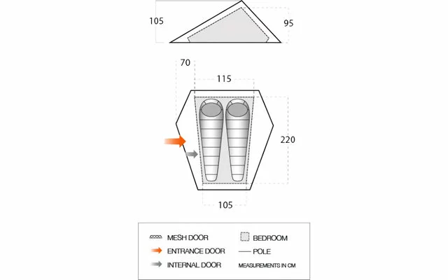 - Türen sind so konstruiert, dass der Regen bei geöffneter Tür nicht ins Zelt tropft.
