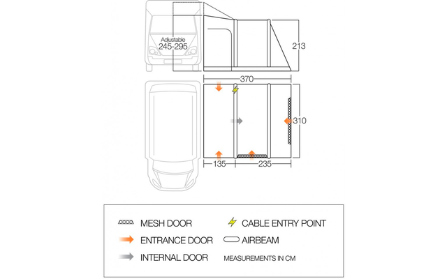 Das freistehende Kela ist ausgestattet mit einem hochqualitativen 420D Doppelripstop Sentinel Pro Gewebe. Dieses gepaart mit Querstreben und einer Reihe von Sturmriemen gewährleistet, dass sich das Kela Pro Air eines der besten und stabilsten Vorzelte. Mit einem Seiteneingang auf jeder Seite der Schleuse ist dieser Platz ideal zum Verstauen von Gegenständen und ist als Schlechtwetter Eingang mehr als geeignet, ihr Zelt bleibt trocken wie auch das Wohn- /Reisemobil. Das patentierte Tension Band System gewährleistet, dass der Vorbau bei harschem Wetter stabil bleibt, sich aber gleichzeitig einfach in die dazugehörigen Taschen verpacken lässt, wenn man es gerade nicht braucht. Das Kela ist ein Vorzelt mit wunderschönem Design, das zusätzlichen Platz für Busse und Reisemobile bietet.