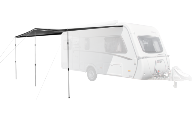 Das CANOPY SHADY PRO kann direkt an Ihrem Wohnwagen benutzt werden. Als Sonnendach kann es an den Modellen GALAXY, PLUTO, CERES und VEGA angebracht werden. Mit einer Tiefe von 225cm haben Sie extra Schatten und Regenschutz. Mit den drei stufenlos höhenverstellbaren Stangen ist das CANOPY SHADY PRO sehr einfach und schnell aufzubauen.
