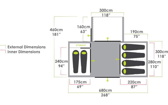 Das voll aufblasbare Zempire Pro IIV2 verfügt über zwei individuelle Schlafräume für mehr Privatsphäre und ist aus unserem robustesten und wasserdichtesten Polyestergewebe gefertigt.